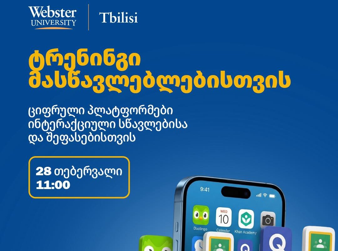 სიახლეები პროფესორის წიგნის პრეზენტაცია-The History of International Relations, 1914–1945 თებერვალი 13, 2026 მიღება მასწავლებლების ტრენინგზე თებერვალი 12, 2026 სტუდენტთა გარე მობილობა webster University Tbilisi-ში იანვარი 16, 2026 ადამიანის უფლებათა დაცვის დღე webster university tbilisi-ში დეკემბერი 11, 2025 შიდა მობილობა Webster university tbilisi-ში ნოემბერი 21, 2025 აბიტურიენტებისა და მაგისტრატურის კანდიდატების ინგლისური ენის ტესტისა და ინტერვიუს შედეგები სექტემბერი 12, 2025 Page1 Page2 Page3 Page4 Page5